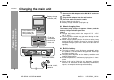 HR-GB201 Charging the main unit Battery charge indicator (red) 1 2 3 Connect the AC adaptor to the DC IN 5V socket on the cradle. Plug the AC adaptor into the wall socket. Place the main unit on the cradle. ! Press down the unit firmly. ! Battery charge indicator (red) lights up. Power Source -Charging the main unit- " About charging time Press down the unit with its front side facing toward you. Fit to the connection terminal of main unit The battery fully charges in approx.