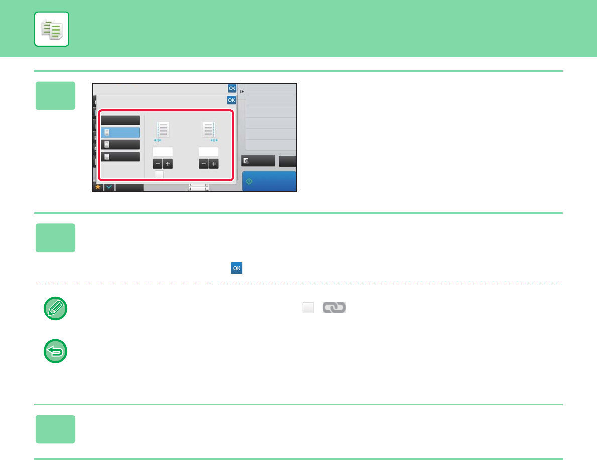 Tap the numeric value display indicating the margin shift area on the front side or reverse side, and enter the area using