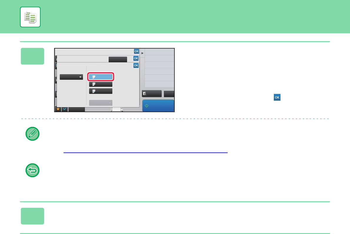 If you selected [2-Sided Copy], tap the [Book] key or [Tablet]