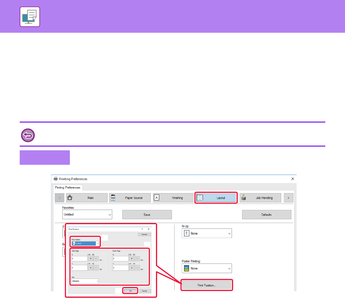 (4) Set the amount of shifting of the print position for odd-numbered pages and even-numbered