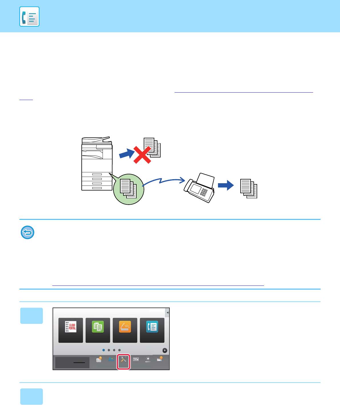When the machine cannot print because it is out of paper or out of toner, received faxes can be forwarded to another