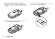 3. Hold the battery so that the metal contacts of the battery are facing down, slide the guides on the top of the battery into the battery slots , and then insert it . 4. Replace the battery cover as shown below and slide it as shown. Note • Make sure that only 3V SIM cards are used. • Use only the approved battery (XN-1BT11).