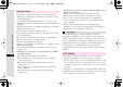 L270_insatsu.book 7 ページ 2006年4月19日 水曜日 午後4時1分 0CAUTION Handset, Battery & Charger 0 Handset care 0 Usage environment « Excessive dust may prevent heat release and cause burnout or fire. « Avoid using handset on the beach. Sand may cause malfunction or accidents. « Keep handset away from credit cards, telephone cards, etc. to avoid data loss. 0 Handset temperature Handset may become hot while in use. Avoid prolonged contact with skin especially at high temperature. May cause burn injuries.