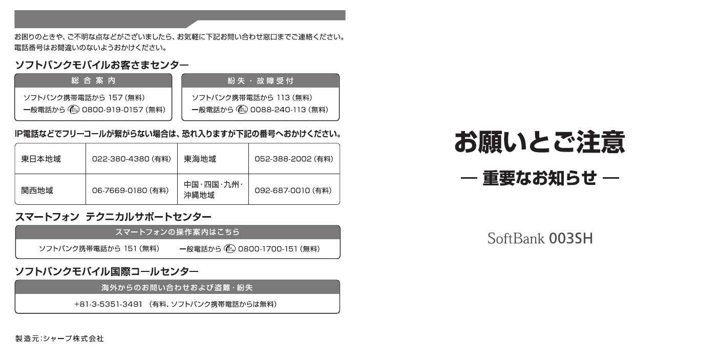 Memo Customer Service For information about SoftBank handsets or services, call General Information. For repairs, call Customer Assistance.