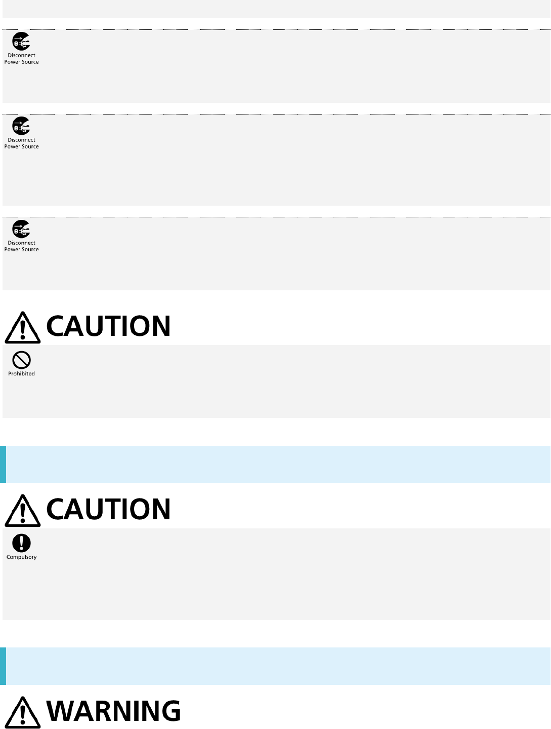 Cleaning AC Adaptor without unplugging it may cause fire, burns, electric shock, etc.