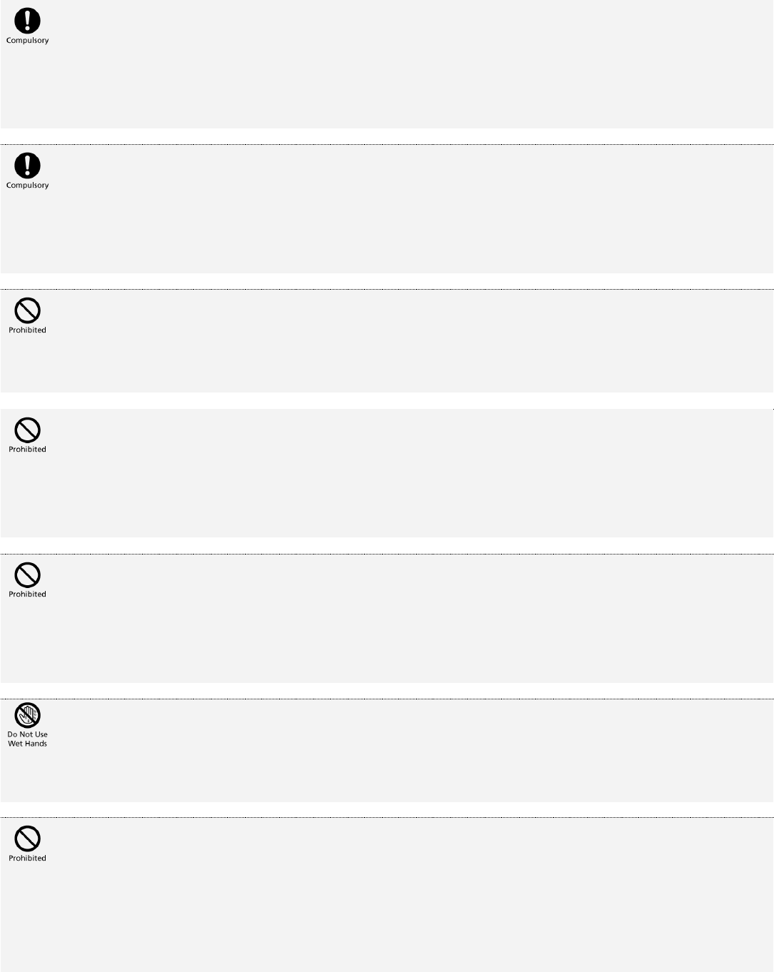 Failure to do so may cause fire, burns, injury, electric shock, etc.