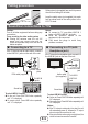 System preparation (continued) ■ Installing the sound bar 2 Make a hole on the wall following the screw point marks on the pattern paper by using a drill. 1-1/4” (32 mm) Align the wall mount slot at the unit to the wall mount angle. 2 Slot the unit into the wall mount angle. Fix them securely. 3/8” (8-9 mm) Wall surface Wall surface Fix a wall mount plug into the hole using a hammer, until it is flush with the wall surface.