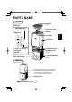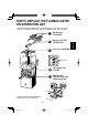 DÉSIGNATION DES PIÈCES AVANT Persiennes AFFICHAGE (voir F-4) Voyant indicateur de remplacement de l’unité (rouge) (voir F-6) Capuchon du couvercle supérieur Vis Haut (bleu) Sortie d’air Touche de Bas (bleu) fonctionnement Indicateur de vitesse du ventilateur Unité génératrice d’ions Plasmacluster (voir F-6,7) Filtre (entrée d’air) Filtre (entrée d’air) FRANÇAIS Couvercle supérieur (voir F-5) ARRIÈRE Utilisez un objet pointu, par ex.