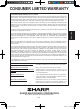 GARANTIE LIMITÉE Produits Électronique grand public Bravo! Vous Venez de faire un excellent achat! La garantie ci-dessus constitue la seule garantie expresse accordée par Sharp. Aucun autre détaillant, aucun centre de service, leurs représentants ou employés, ne sont autorisés à prolonger la durée de la garantie, à fournir des garanties autres ou à transférer cette garantie au nom de Sharp.