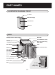 PART NAMES ILLUSTRATIVE DIAGRAM - FRONT Air Outlet Main Unit Display Front Monitor Main Unit BACK Handle(2 locations left and right) Air Outlet Sensors True HEPA filter (white) • Dust Sensor • Temperature / Humidity Sensor Washable Deodorizing filter (black) Tank Handle Tabs Back Panel (Pre-filter) Water Tank (For humidifying) Humidifying Filter Filter Frame Tank Cap Float Humidifying Tray Power Cord Plug Air Inlet Date Label (Rating Label) E-8