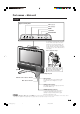 Part names – Main unit Controls Upper control panel VOL (l)/(k) CH (s)/(r) MENU TV/VIDEO MAIN POWER VOL CH MENU TV/VIDEO MAIN POWER To change the vertical angle of the LCD TV set, tilt the screen up to 5 degrees forward or 10 degrees backward. The TV set can also be rotated 25 degrees to right and left. Please adjust the angle so that the TV set can be watched most comfortably. How to adjust the angle Hold the carrying handle and tilt the screen while steadying the stand with your other hand.