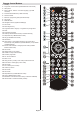 Remote Control Buttons 1. Standby 2. Image size / Zooms videos (in Media Browser video mode) 3. Sleep Timer 4. Mono / Stereo - Dual I-II / Currrent Language (*) (in DVB channels) 5. Favourite Mode Selection (in DVB channels) 6. Numeric buttons 7. Electronic programme guide (in DVB channels) SLEEP SCREEN FAV LANG. PRESETS 8. No function 9. Media Browser 10. Navigation buttons (Up/Down/Left/Right) 11. No function 12. Recordings Library 13. Programme Down / Page up - Programme Up / Page down 14.