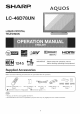 AQUOS LC-46D78UN LIQUID CRYSTAL TELEVISION l'_ DOLBY DIGITAL IMPORTANT 1245 Supplied Make sure the : Please read this operation manual before starting operating the equipment. NYCE following accessories are provided with the product. "AA" size battery (× 2) AC cord (x 1) Cable clamp (x 1) Starld unit (× 1) | Page 9 Page 8 Page 8 Page 7 | Page 8 _, [] Operation '° ..................................