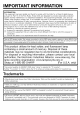 IMPORTANT INFORMATION INFORMATION: This equipment has been tested and found to comply with the limits for a Class B digital device, pursuant to Part 15 of the FCC Rules. These limits are designed to provide reasonable protection against harmful interference in a residential installation. This equipment generates, uses and can radiate radio frequency energy and, if not installed and used in accordance with the instructions, may cause harmful interference to radio communications.