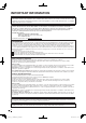 IMPORTANT SAFETY INSTRUCTIONS Caring for the front panel • Turn off the main power and unplug the AC cord from the wall outlet before handling. • Gently wipe the surface of the front panel with a soft cloth (cotton, flannel, etc.). To protect the front panel, do not use a dirty cloth, liquid cleaners, or a chemical cloth (wet/dry sheet type cloth, etc.). This may damage the surface of the front panel. • Wiping with a hard cloth or using strong force may scratch the surface of the front panel.