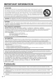 iMPORTANT iNFORMATiON CAUTION: DO NOT PLACE THIS PRODUCT ON AN UNSTABLE CART, STAND, TRIPOD, BRAC, KET, OR TABLE. THE PRODUC, T MAY FALL CAUSING SERIOUS PERSONAL INJURY AND SERIOUS DAMAGE TO THE PRODUCT.