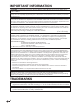 Contents IMPORTANT INFORMATION ...................................................................................... 1 TRADEMARKS ............................................................................................................. 2 IMPORTANT SAFETY INSTRUCTIONS...................................................................... 3 QUICK REFERENCE.................................................................................................... 8 Supplied Accessories ............................