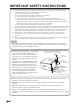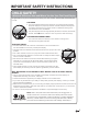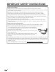 IMPORTANT SAFETY INSTRUCTIONS Caring for the Cabinet • Use a soft cloth (cotton, flannel, etc.) and gently wipe the surface of the cabinet. • Using a chemical cloth (wet/dry sheet type cloth, etc.) may deform the components of the main unit cabinet or cause cracking. • Wiping with a hard cloth or using strong force may scratch the surface of the cabinet. • If the cabinet is very dirty, wipe with a soft cloth (cotton, flannel, etc.
