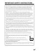 IMPORTANT SAFETY INSTRUCTIONS • Water and Moisture — Do not use this product near water - for example, near a bath tub, wash bowl, kitchen sink, or laundry tub; in a wet basement; or near a swimming pool; and the like. • Stand — Do not place the product on an unstable cart, stand, tripod or table. Placing the product on an unstable base can cause the product to fall, resulting in serious personal injuries as well as damage to the product.