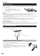 Preparation Supplied accessories Remote control unit (g1) • “AAA” size battery (g2) • Operation manual (This publication) • Stand unit (x1) • Cable tie (x1) Attaching the stand unit • Before attaching (or detaching) the stand, unplug the AC cord. • Before performing work, spread cushioning over the surface on which you will be laying the TV. This will prevent it from being damaged. CAUTION • Attach the stand in the correct direction. • Be sure to follow the instructions.