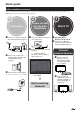 Quick guide Initial auto installation 5 When the TV is powered on for the first time after purchase, the initial auto installation wizard appears. Follow the menus and make the necessary settings one after another. Select broadcast settings. Press ▲/▼ to move between different tune type. Press OK to select the desired antenna. Confirm the following before turning on the power E Is the antenna cable connected? E Is the AC cord plugged in? 1 • The initial auto installation wizard appears.