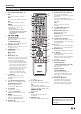 Einleitung Fernbedienung 1 2 >a (Stand-by/Ein) (Seite 17) ATV Erweiterte Senderliste aufrufen. DTV Einschalten des digitalen TV-Modus. SAT Erweiterte Senderliste aufrufen. RADIO DTV/SAT: Umschalten zwischen dem RADIO- und DTV- oder CADTV-Modus. • Wenn über DVB nur Daten (kein Radio) übertragen werden, wird die Radioausstrahlung übergangen. 3 S/I/J/E/H (Seiten 49 und 53) Tasten für die Video-/Musik-/USB REC Wiedergabe a QUELLE (Seite 44) Betreiben eines HDMI CEC Geräts.