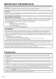 Contents iMPORTANT iNFORMATiON ..................... Trademarks ....................................... DEAR SHARP CUSTOMER ....................... iMPORTANT SAFETY iNSTRUCTiONS ........ Supplied Accessories ............................ 1 2 3 3=5 7 QUICK REFERENCE Attaching the Stand ............................ QUICK INSTALLATION TIPS ................... Using the Remote Control Unit ................. 7 8 8 Preparation Antennas .......................................