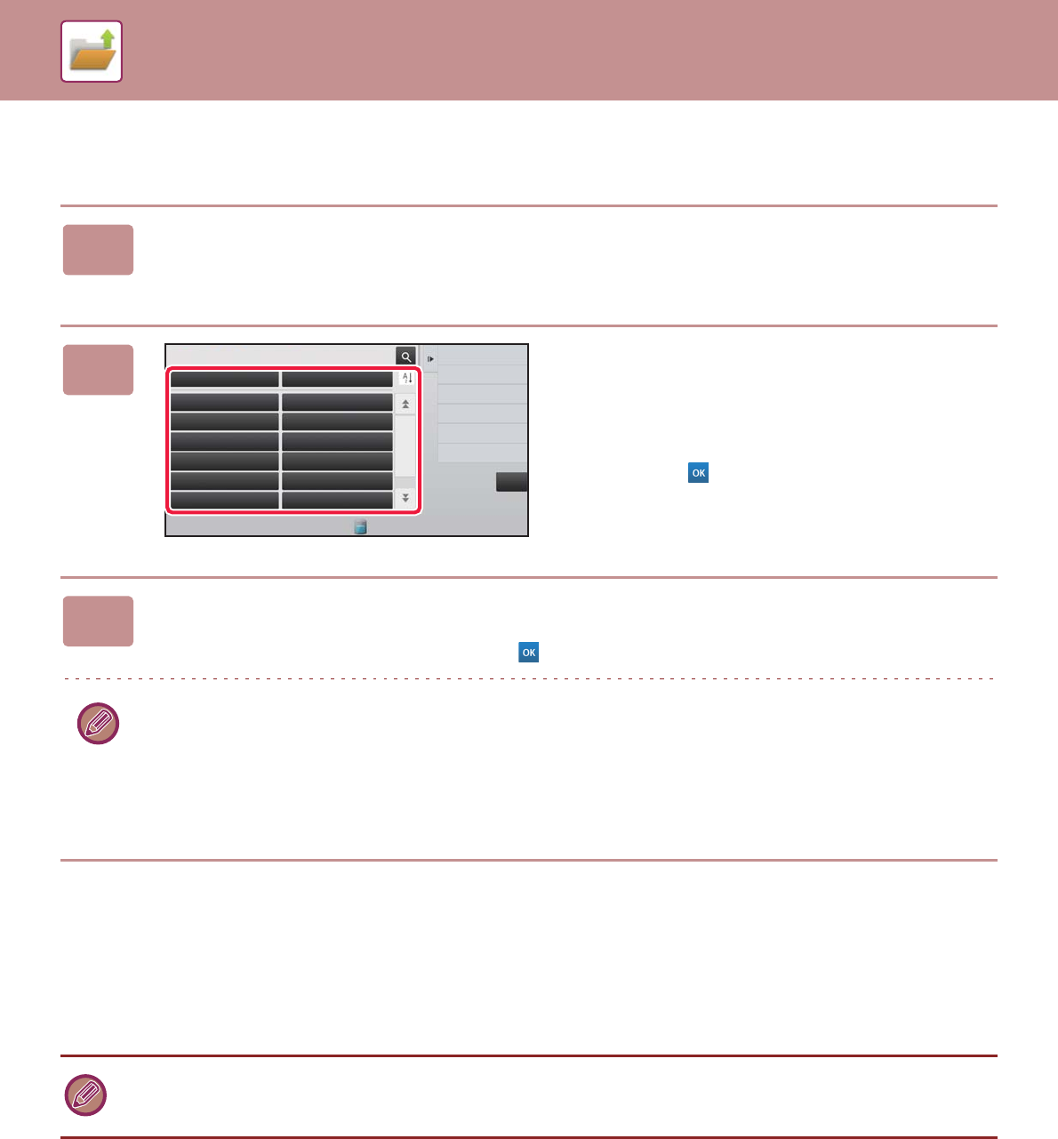 • Tap the [File Name] key, the [User Name] key, or the [Date] key to change the order of display of the files.