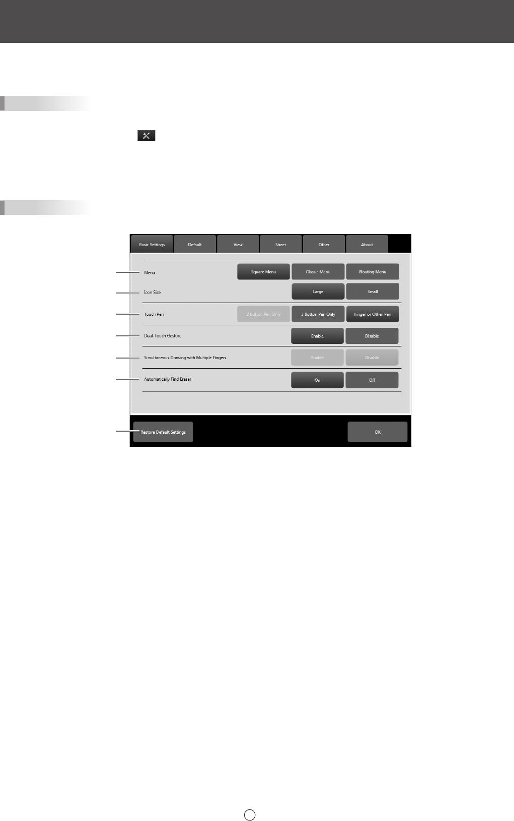 To use multiple models, set to “Finger or Other Pen”. In this case, the “2 button pen” and “3 button pen” functions cannot be