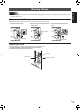 Installation (Continued) Placement on the rack stand Place the unit on the supplied rack stand. 1. Attach the back of the stand to the front. Place the front and back sides together, and attach the hinge. Tape Back Front hinge part Front ENGLISH 3. Peel off the adhesive tape securing the support to the back side. nLL-S242A-W Support Back 4. Fold down the support, inserting the tabs into the holes on the front side. Back hinge part 5. Position the stand. Tape Front Back Support 6.