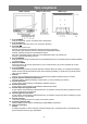 Opis urządzenia Ustawienie i regulacja monitora Składanie monitora (przed transportem) Monitor należy składać wyłącznie przed transportem. Częste składanie monitora może spowodować jego uszkodzenie. 1. Odłącz zasilacz. 2. Dokonując regulacji monitora należy ustawić go pionowo. 3. Przyciskając przycisk blokady (1) umieszczony z tyłu należy pochylić monitor (2). Ostrzeżenie! - Należy pamiętać, by dotykać wyłącznie zielonego obszaru. Siła nacisku rąk może spowodować uszkodzenie panelu LCD.