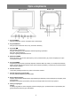 Opis urządzenia Składanie monitora 1. Odłącz zasilacz. 2. Przytrzymując podstawę odchyl monitor do tyłu. Ustawienie i regulacja monitora Ostrzeżenie! - Nie wolno naciskać na panel LCD, ponieważ mogłoby to spowodować jego uszkodzenie. Ustawienie monitora Przytrzymaj podstawę i ustaw monitor w pozycji pionowej. Regulacja kąta monitora Przytrzymaj podstawę i ustaw monitor pod żądanym kątem.