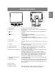 Produktbeschreibung 7 7 English 15 4 5 6 8 9 10 11 12 13 1. Taste INPUT ................................ Für die Umschaltung zwischen den Signaleingangsanschlüssen. 2. Taste MENU ................................ Mit dieser Taste öffnen, wählen und schließen Sie das OSD (On screen Display) -Menü. ....................................... Mit dieser Taste wählen Sie die Menüoptionen aus, wenn das OSD3. Taste Menü angezeigt wird. 4. Tasten ..................................