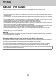 Preface ABOUT THIS GUIDE This guide provides information about how to use the machine and what to do when a problem occurs. If you encounter a problem, check this guide before calling a support center. Please note • This guide assumes that the persons who install and use this product have a working knowledge of their computer and web browser. • For information on your operating system or web browser, please refer to your operating system guide or web browser guide, or the online Help function.