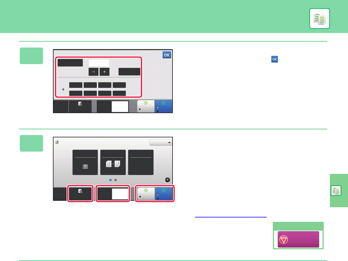 Set the number of copies and then tap