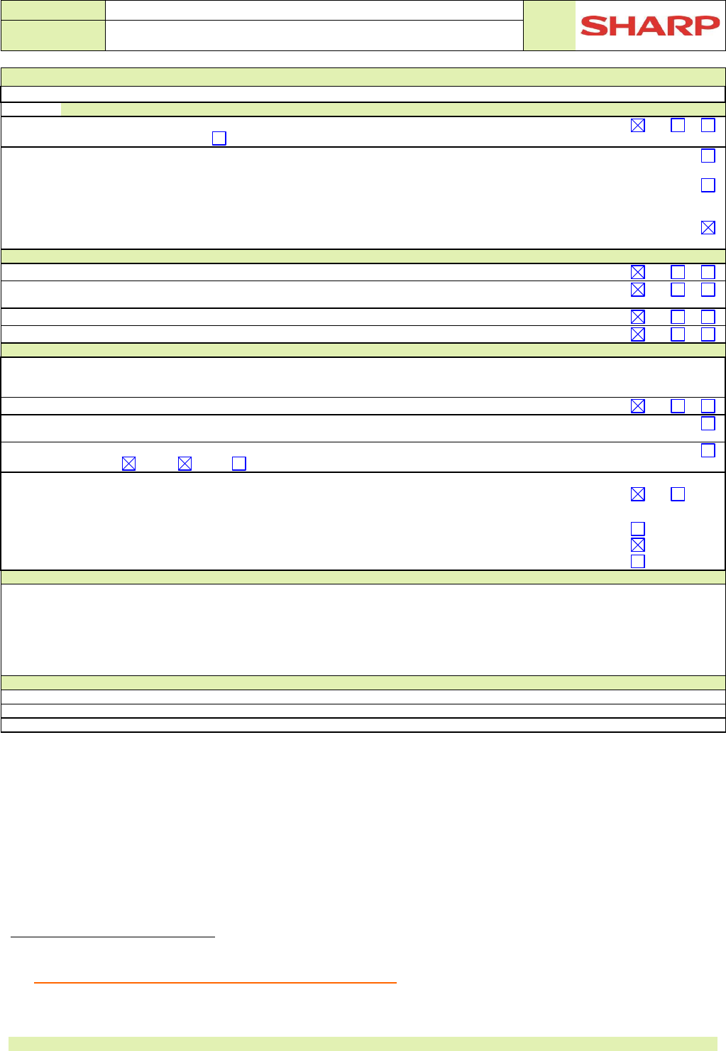 Product environmental attributes - Market requirements (continued) Requirement met