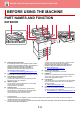 BEFORE USING THE MACHINE►BEFORE USING THE MACHINE BEFORE USING THE MACHINE PART NAMES AND FUNCTION EXTERIOR (1) (2) (3) (1) (4) (5) (6) (7) (8) MX-M2651/MX-M3051/MX-M3551/ MX-M4051/MX-M5051/MX-M6051 (1) (2) (3) (4) (5) *1 *2 Automatic document feeder It automatically feeds and scans multiple originals. 2-sided originals can be automatically scanned.