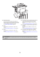 Replace the staple case. Push the staple case in until it clicks into place. 6 Slide the finisher back to the right. Gently slide the finisher back to the right until it locks into its original position. 7 Close the cover. 8 Make a test print or copy in staple sort mode to verify that stapling takes place correctly. Removing staple jams Follow the steps below to remove a staple jam. Open the cover. 1 While pressing the lever over to the left, slide the finisher to the left until it stops.