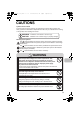 mxc400p_us_saf.book 6 ページ 2009年10月5日 月曜日 午後1時53分 CAUTIONS CAUTION The fusing unit is hot. When removing a misfeed, do not touch the fusing unit. Take care not to burn yourself. Fusing unit When loading paper, removing a misfeed, performing maintenance, closing the front and side covers, and inserting and removing trays, take care that your fingers are not pinched. If you will not use the machine for a long time, be sure to remove the power plug from the outlet for safety.