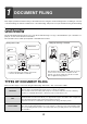 USES OF DOCUMENT FILING Several examples of how document filing can be used are provided below. Quickly using a file Example: You prepared handouts consisting of numerous pages for a meeting, however, another handout is needed for a newly added participant. The handout was not saved using document filing The handout was saved using document filing All the numerous original pages must be scanned again. The scanned original pages are stored on the hard drive. The file can be called up at any time.