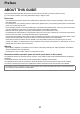 Preface ABOUT THIS GUIDE This guide provides information about how to use the machine and what to do when a problem occurs. If you encounter a problem, check this guide before calling a support center. Please note • This guide assumes that the persons who install and use this product have a working knowledge of their computer and web browser. • For information on your operating system or web browser, please refer to your operating system guide or web browser guide, or the online Help function.