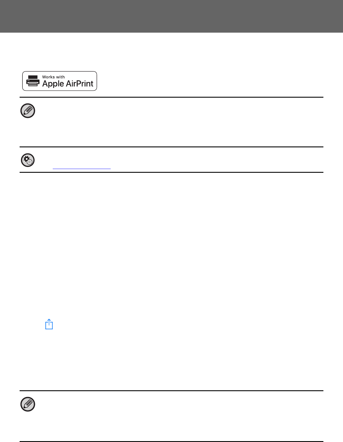 • The functions that can be used when printing with AirPrint vary depending on the OS and the application.