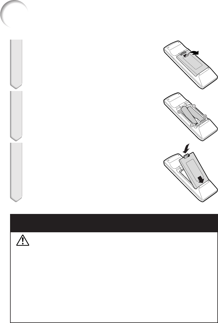 • Remove the batteries from the remote control if you will not be using the remote control for a long time.