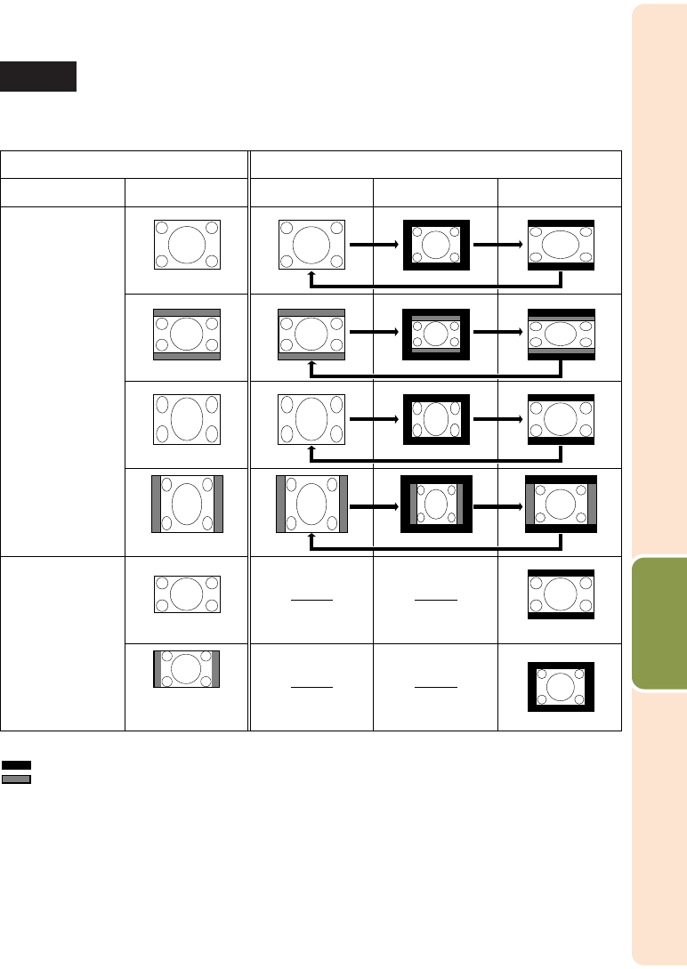 • “STRETCH” is fixed when 540P, 720P, 1035I or 1080I signals are entered.