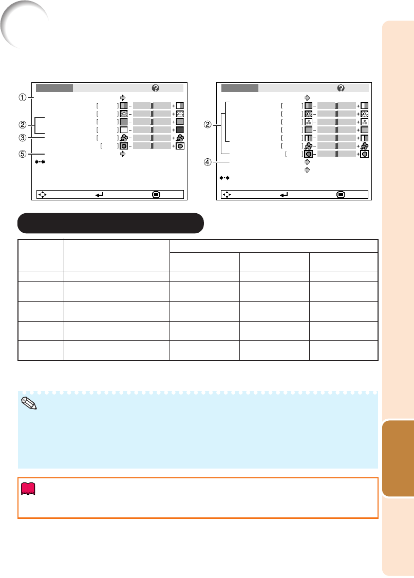 •You can set or adjust each item in the “Picture” menu to your preference. Any changes you make are