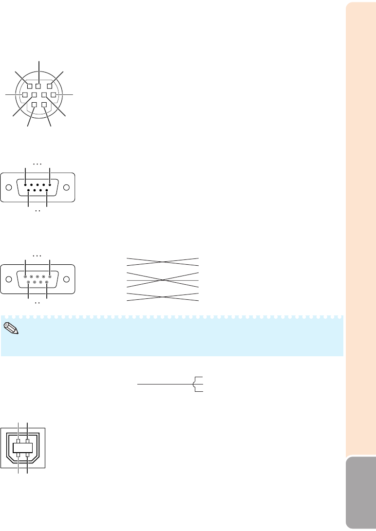 RS-232C Cable recommended connection: D-sub 9 pin female connector