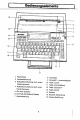 Bedienungselemente e 1 Papierlaser 8 Leertaste 2 Papierabdeckung 9 Handgriff herauskitzelbar 3 Halbzellenschaltung nach unten, 10 Taste ,Code” Papiertransport 1 Taste Umschaltung” 4 Halbzeilenschaltung nach oben, 12 Taste ,Tabulator” Papiertransport 18 Taste ,Mode” 5 Ein-Aus-Schalter 14 Display 6 Kontrast-Einstellung Display 16 Drucker-Abdeckung 7 Zeilenschaltung 18 Papler-Einftihrung