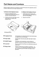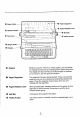 Part Names and Functions Before you begin, take the time to familiarize yourself with the parts of the typewriter and their functions. We'll start by removing the keyboard cover, To Remove the Keyboard Cover: To Replace the Keyboard Cover: 1. Remove the keyboard cover by 1. Holding the tabs on the sides of the simultaneously pressing down with your cover, hook the tabs on the front of the thumbs on the top of the cover. cover onto the typewriter. 2. Pulling up with your index fingers on the 2.