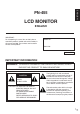 ENGLISH PN-455 LCD MONITOR ENGLISH IMPORTANT: To aid reporting in case of loss or theft, please record the product’s model and serial numbers in the space provided. The numbers are located in the rear of the product. Model No.: Serial No.: U.S.A. ONLY IMPORTANT INFORMATION WARNING: TO REDUCE THE RISK OF FIRE OR ELECTRIC SHOCK, DO NOT EXPOSE THIS PRODUCT TO RAIN OR MOISTURE. CAUTION RISK OF ELECTRIC SHOCK DO NOT OPEN CAUTION: TO REDUCE THE RISK OF ELECTRIC SHOCK, DO NOT REMOVE COVER.