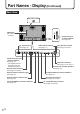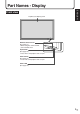 Part Names - Display ENGLISH Front view Liquid Crystal Display panel INPUT Remote control sensor (See page 12.) * When using the remote control, point it towards here. INPUT Input button (See page 25.) * Press with a sharp object such as a pen. Power button (See page 24.) * Press with a sharp object such as a pen. Power LED (See page 24.